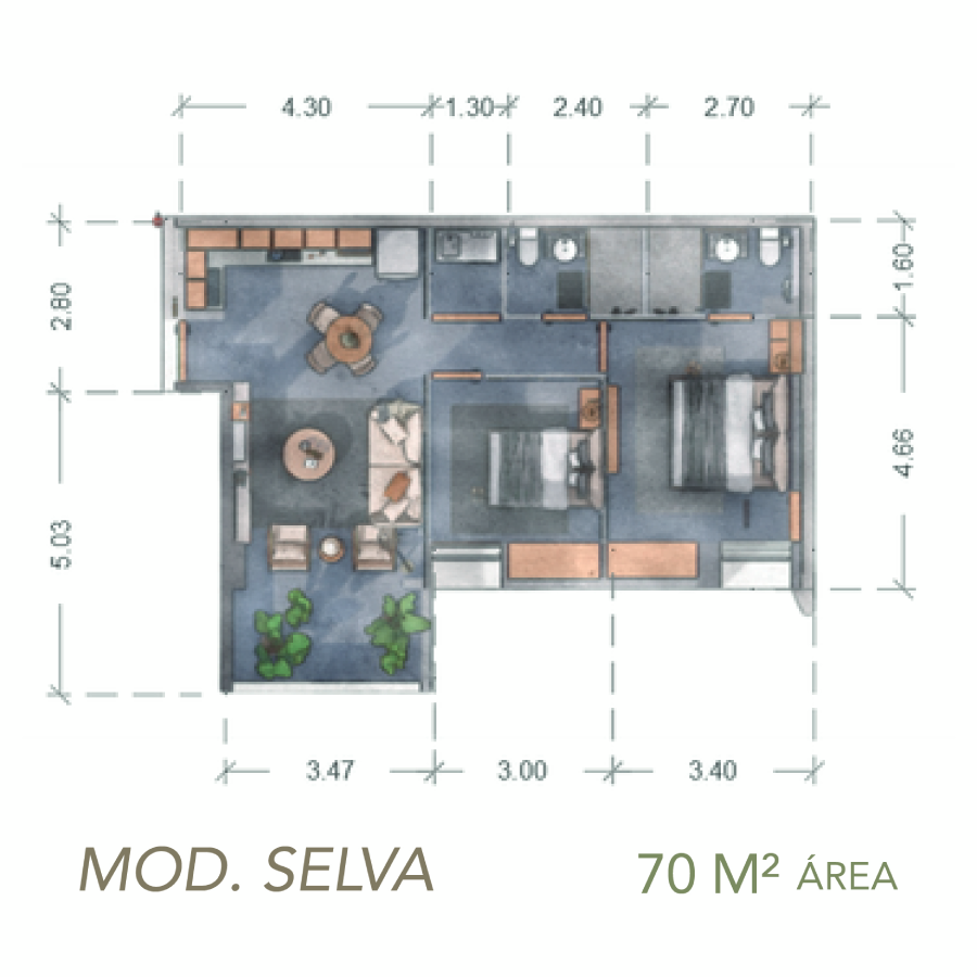 MODELO SELVA 70 M²